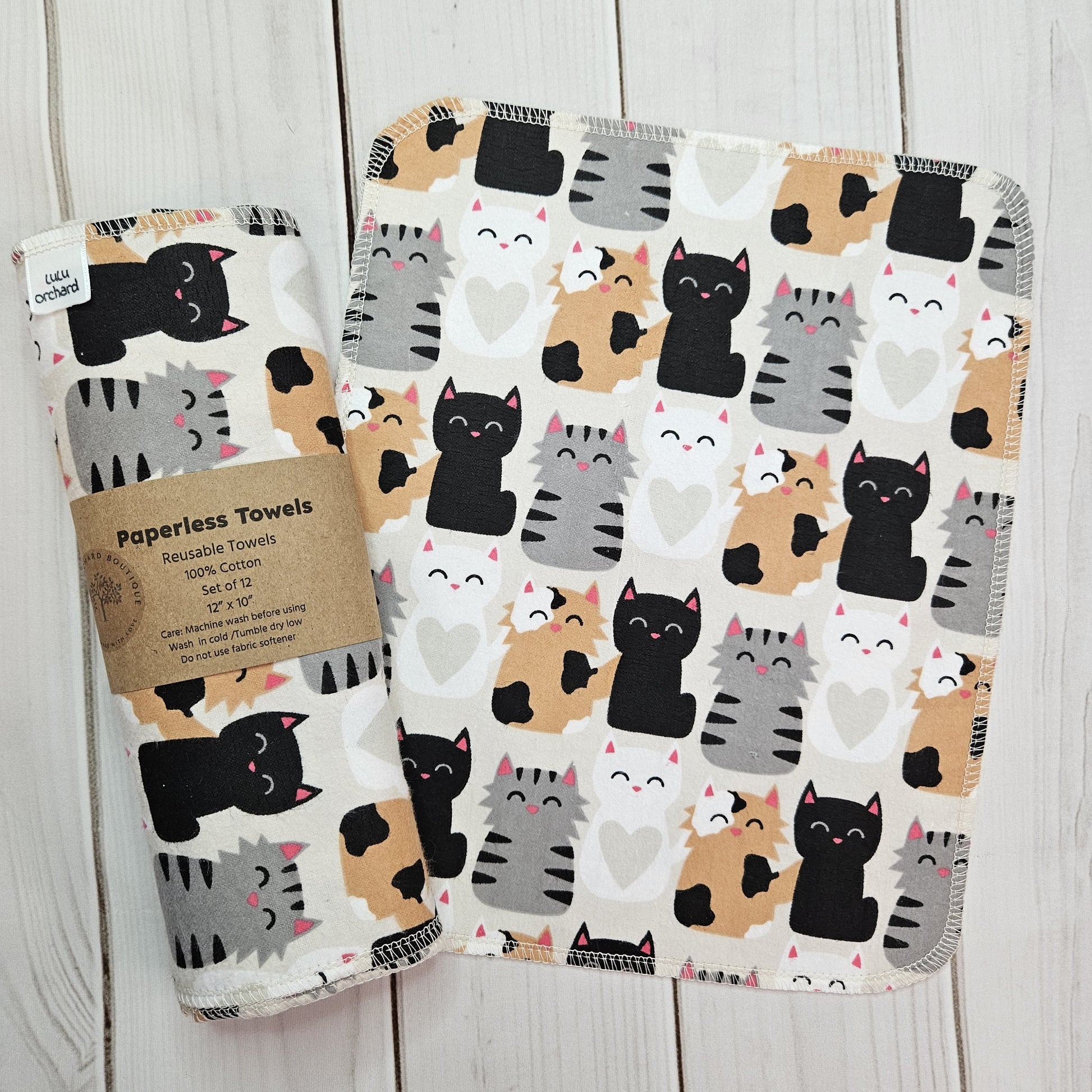CALICO CATS THEMED print on a BEIGE background Paperless Towels are reusable. Great alternative to traditional paper towels. Save money and reduce waste. Great way to replace your paper towels.