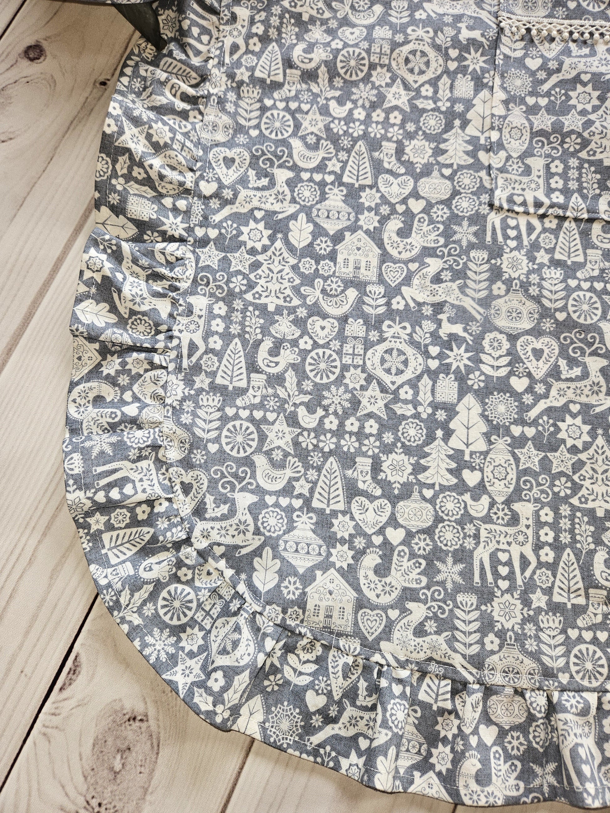 Christmas Scandinavian Print Grey Ruffled Half Apron