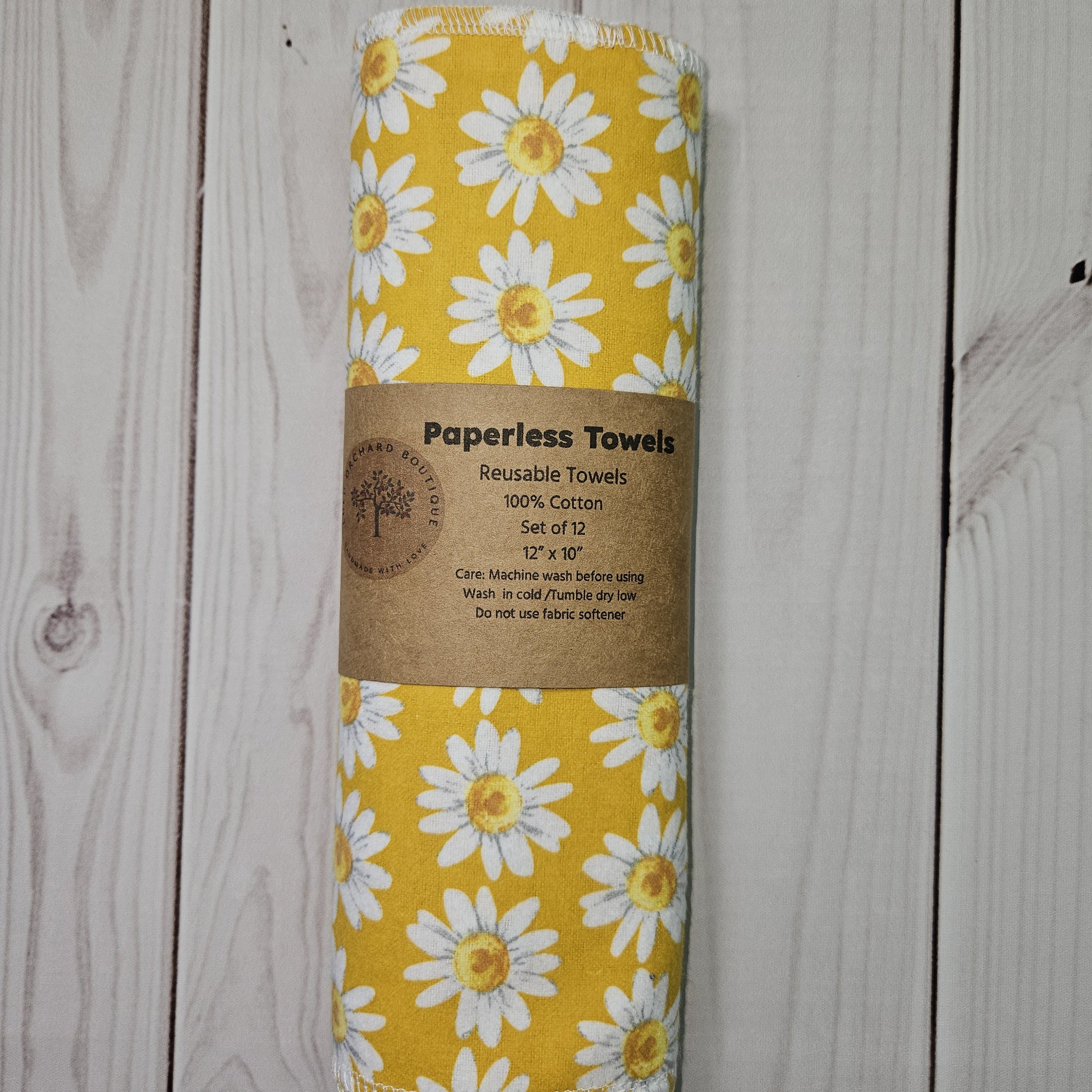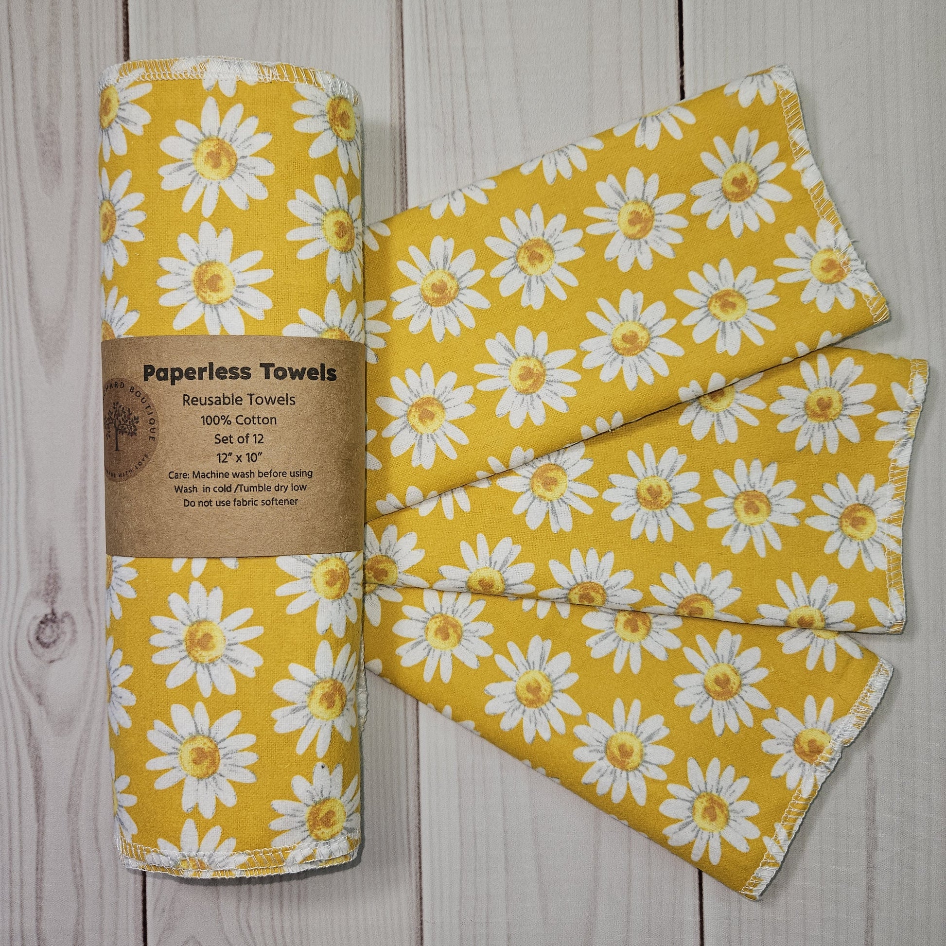 DAISIES on a YELLOW background Paperless Towels are reusable. Great alternative to traditional paper towels. Save money and reduce waste. Great way to replace your paper towels.