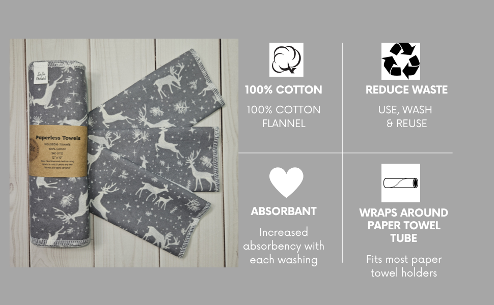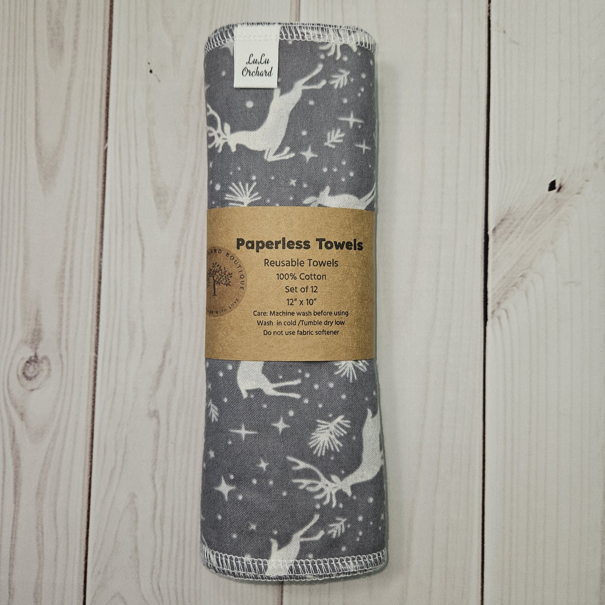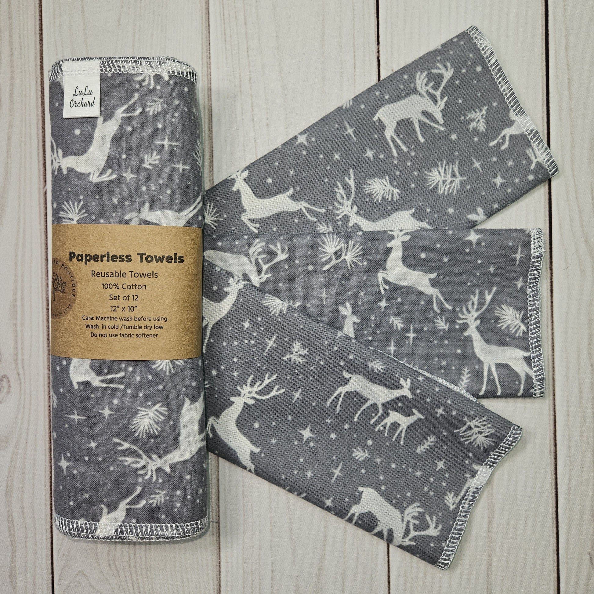 Deer on Gray Background Paperless Towels. These paperless towels are a great alternative to traditional paper towels. Save money and reduce waste. Great way to replace your paper towels.