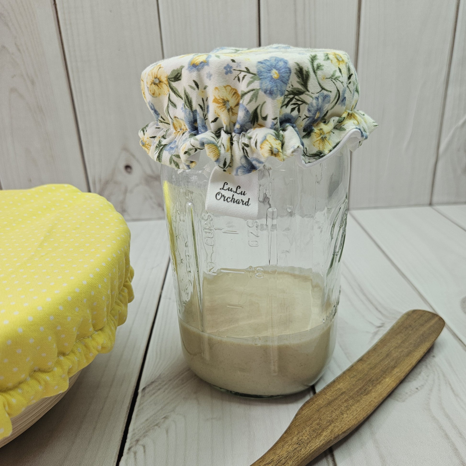 -The wide-mouth jar cover is made of 100% cotton and is lined with PUL fabric. It is perfect for storing your sourdough starter and provides an optimal environment for fermentation.