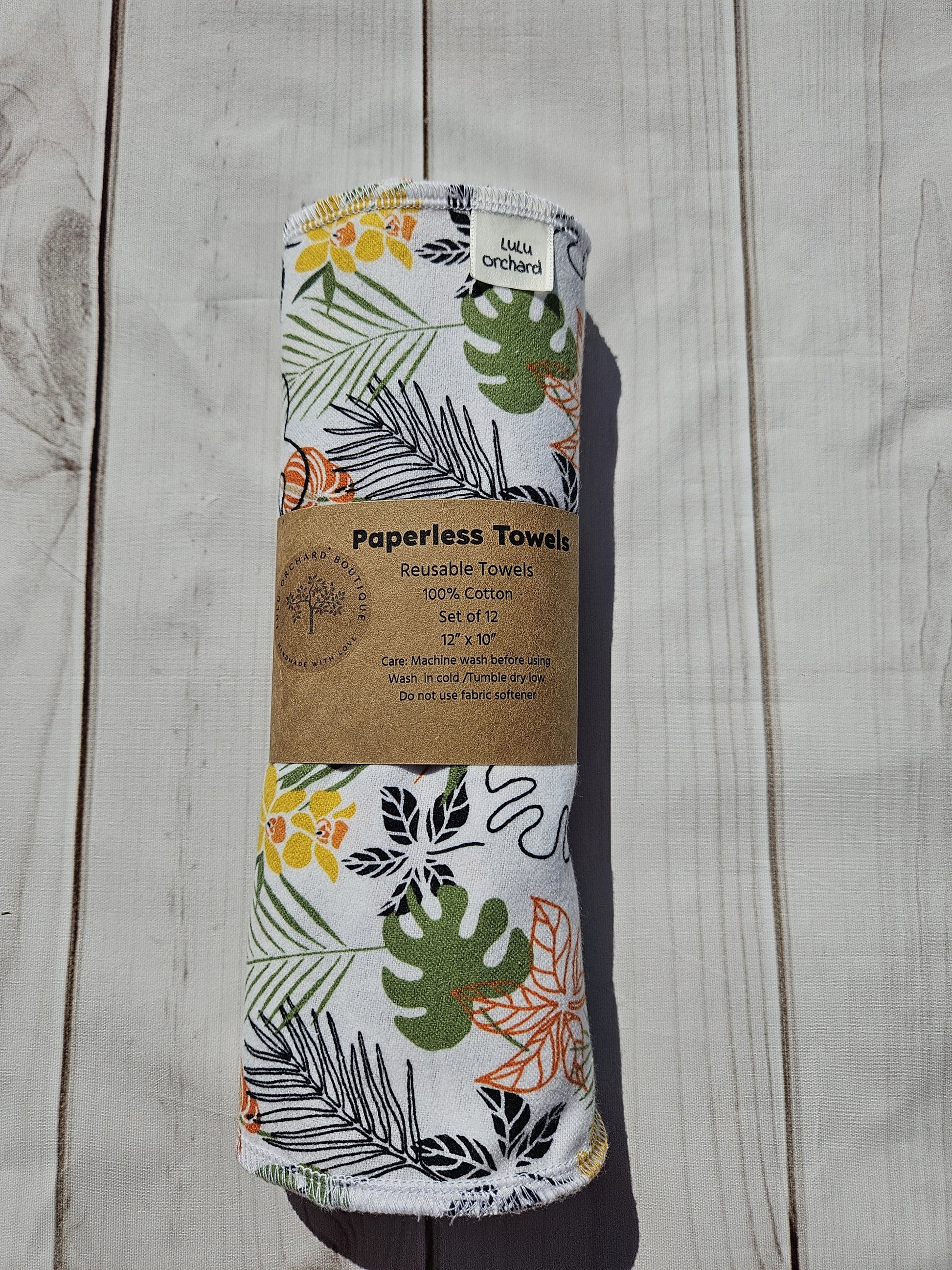 Tropical Leaves Paperless Towels are reusable. Great alternative to traditional paper towels. Save money and reduce waste. Great way to replace your paper towels.
